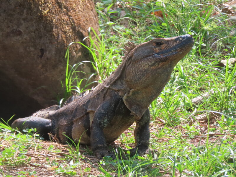 Um sechs Uhr, schon vor dem Zmorgen, aber wenigstens mit einem warmen Kafi im Bauch, starten wir zu unserer Bootssafari. Still und langsam gleiten wir mit einem offenen Boot über den Fluss und halten Ausschau nach Tieren und Pflanzen. Schon bald entdecken wir einen grünen Leguan und einen Schlangenhalsvogel. Schlag auf Schlag geht es weiter mit einem grünen Basilisken und Gelbstirn-Wasserhühnern. Es ist unglaublich, was sich da am Ufer und auf den Bäumen alles tummelt. Brüllaffen, Klammeraffen, Fischadler, Tukane, Blaureiher, Papageien, Silberreiher, Wasserschildkröten, Krokodile, Kaimane und noch vieles mehr. Wir gleiten gemütlich am Ufer des Flusses entlang und durch einen engen Kanal. Nicht nur die Tiere, auch die üppige Vegetation des Dschungels sind überwältigend. Die zweistündige Fahrt ist so kurzweilig, dass wir gar nicht merken wie die Zeit vergeht, und dass sich unser Magen nach dem Zmorgen sehnt.