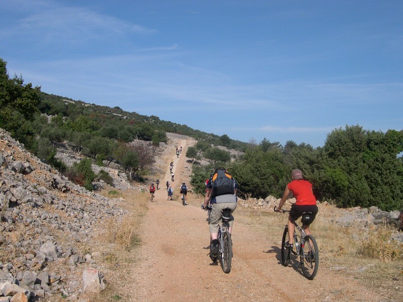 So befahren wir mit dem Bike die Inseln Cres, Mali Losinj, Dugi Otok und Pag auf abwechslungsreichen Wegen mit immer wieder neuen Blicken auf das tiefblaue Meer. Wir erkunden auch die interessanten Städte und Fischerdörfchen. Die Insel Krk können wir wegen des starken Windes, der Bora, welche von den Bergen bläst, nicht mehr anfahren. Wir sitzen zwei Tage in Rajska Plaza fest und vertreiben die Wartezeit mit Wanderungen, Lesen und Würfelspielen. Nach einer langen, stürmischen Überfahrt nach Rijeka, bei der unser Kapitän Tiejo sein ganzes Können zeigen muss, können wir die Heimreise mit dem Bus doch noch antreten.