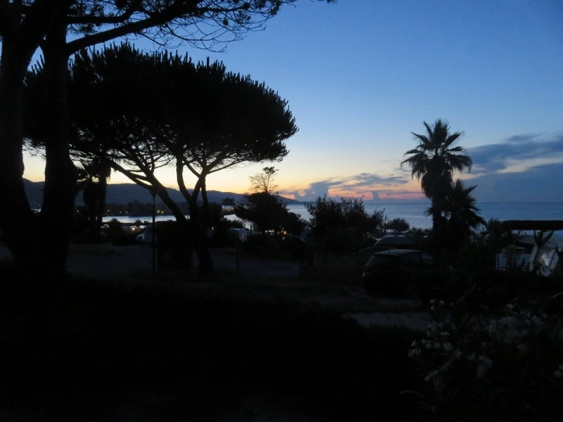 Nach dem Essen kommen die jungen Nachbarn, mit einem Mont-Balnc-Kräuterschnaps als Entschuldigung. Wir stehen beim Eindunkeln in der Runde, stossen an und reden Deutsch, Französisch und Englisch durcheinander. Zwei Personen kommen aus London und die anderen zwei aus Lyon. Es ist ein lustiges Gespräch und wir kommen auch auf die Scherenschnitt-Ausstellung zu sprechen. Ruth schenkt der Frau einen von unseren zehn Katalogen. Sie flippt fast aus und findet das ein Highlight ihrer Reise. Wir Plaudern noch lange mit Händen und Füssen. Es ist doch schön, wenn die kleinen Probleme so einfach mit einem Schnaps gelöst werden können.