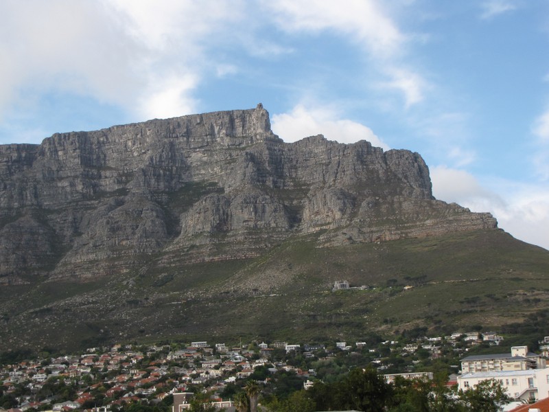 Nachdem wir im Januar am Nordkap gestanden sind, stehen wir jetzt am Kap der Guten Hoffnung. Dieses Kap ist der südwestlichste Punkt Afrikas. Hier treffen der Altlantische und der Indische Ozean aufeinander. Wir können die Gewalt der Wassermassen an den grossen Wellen welche gegen die Felsen peitschen nur erahnen. Der starke Wind fegt uns fast weg. Wir besteigen aber trotzdem den kleinen Aussichtsberg beim Kap, geniessen bei strahlendem Sonnenschein die herrliche Aussicht und lassen uns den Wind durch die Haare fegen. Einfach herrlich dieses Naturschauspiel.