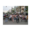 In Saigon gibt es nur 100'000 Autos aber 2,7 Millionen Roller. Ich habe das Gefühl heute seien all diese auf der Strasse. Wo man hinschaut fahren Mopeds, welche nicht selten mit drei bis vier Personen besetzt sind. Der Verkehr mit dem Durcheinander von Fussgängern, Velos, Rikschas und Autos und eben diesen Rollern sieht sehr chaotisch aus, aber er funktioniert. Auf dem Rückweg vom Hafen zum Hotel müssen wir eine ca. 10 m breite Strasse überqueren. Das erscheint uns unmöglich, denn in beiden Richtungen fliesst eine breite und nie endende Kolonne mit unzähligen Mopeds, fünf oder gar zehn nebeneinander. Fussgängerstreifen oder Lichtsignale suchen wir vergebens. Hai erklärt uns wie man in Ho Chi Minh City eine Strasse überqueren muss: „Du musst nur ganz langsam laufen. Die Rollerfahrer sehen dich schon und weichen aus. Nur eines darfst du nicht, du darfst auf keinen Fall stehen bleiben sonst bist du verloren“. So werfen wir uns mutig in den Töffverkehr, setzen einen Fuss vor den anderen und siehe da es geht! Die Rollerfahrer weichen nach links und rechts aus und wir erreichen sicher und glücklich die andere Strassenseite. Auf den Strassen ist noch so viel los heute Abend, sodass wir trotz der aufkommenden Müdigkeit noch nicht ins Bett wollen. Wir schlendern weiter durch die grosse Stadt und sind schon fast süchtig nach Strassenüberquerungen.