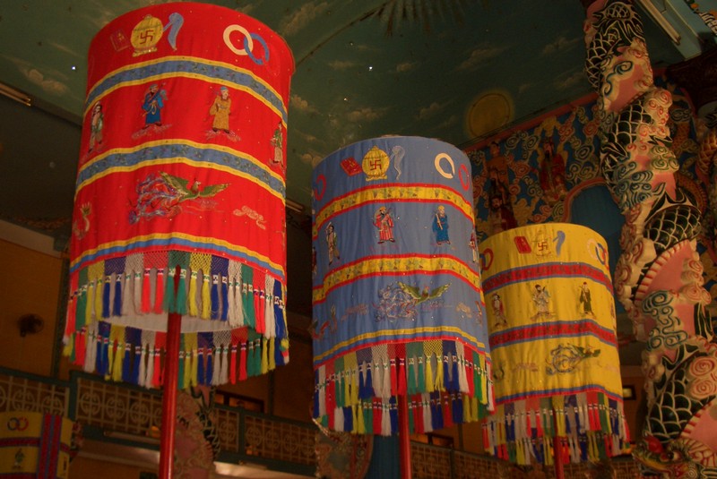 Am Bahnhof von Da Lat, besteigen wir eine alte Diesellok. Diese macht für uns eine Extrafahrt, hinauf nach Xuan Tho. Wir sind nur sechs Gäste. Das Bahnpersonal, welches uns begleitet, besteht aus einem Lokführer, einem Kondukteur und einem weiterer Bähnler, der die anderen zwei kontrolliert. Die Fahrt ist sehr interessant und führt durch eine Gegend wo viel Gemüse angebaut wird. In Xuan Tho besichtigen wir einen speziellen, farbenfrohen Tempel. Im Tempelhof befindet sich ein riesengrosser Drache, welcher aus 120'000 Bierflaschen hergestellt ist. Alle Verzierungen sind Mosaike, hergestellt aus alten Gebrauchsgegenständen, wie Teller, Schüsseln, Gläsern und so weiter. Die Bahncrew wartet am Bahnhof bis wir wieder kommen. Nachdem der Bahnhofvorstand mit der Kelle abgewinkt hat und der Bahnarbeiter die hölzerne Schranke von Hand geschlossen hat, kann die abenteuerliche Fahrt hinunter nach Da Lat losgehen. Wir stehen vorne auf dem Trittbrett und können die Landschaft und die Arbeiter, welche dem Geleise entlang nach Hause gehen beobachten. Ab und zu müssen Fussgänger, Hunde, Kühe und Töfffahrer von dem Trasse flüchten. Ich hoffe nur, dass die Bremsen unserer Lock funktionieren. Aber es kommt alles gut, die Lock verlangsamt das Tempo und wir halten sicher im Bahnhof von Da Lat.