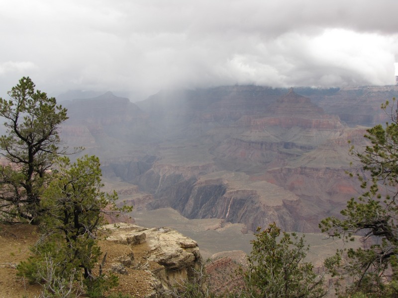 Dass wir bei einem der seltenen Regen im Monument Valley dabei sein dürfen, ist für uns ein Highlight. Vermutlich hat es gestern schon geregnet und wir können erleben, wie die Wüste grünt. Die hier nur spärlich vorhandenen Pflanzen blühen in den schönsten Rot- Gelb- und Blautönen. Das Rot der Steine und Felsformationen wirkt noch intensiver als sonst. Alles ist frisch gewaschen und herausgeputzt. Die Rückfahrt mit dem Jeep auf den schlammigen Strassen ist manchmal sehr abenteuerlich. Wir werden zwar im offenen Fahrzeug ein bisschen nass, aber bei trockenem Wetter wären wir vermutlich sehr staubig geworden.