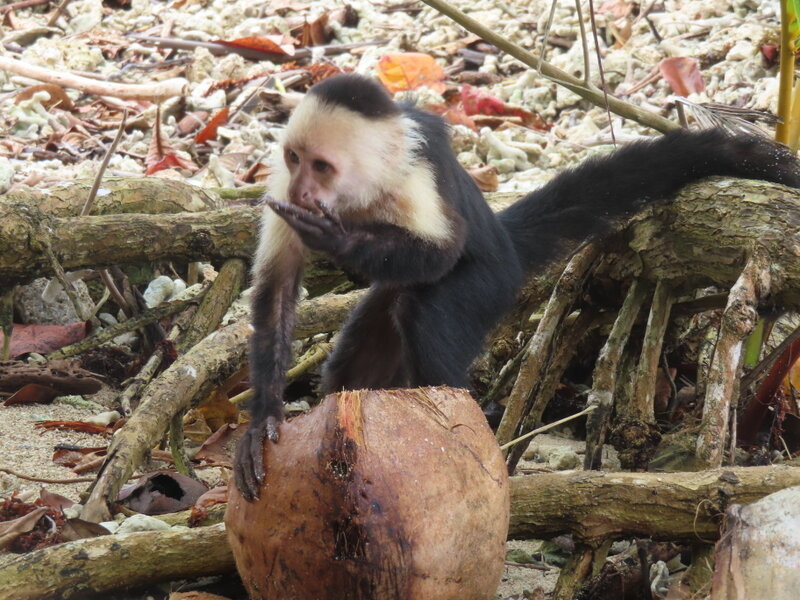 Bei Sonnenschein, hoher Luftfeuchtigkeit und Temperaturen um die 28 Grad, wandern wir der Karibikküste entlang durch den üppigen Regenwald und halten Ausschau nach Tieren und Pflanzen. Unsere Erwartungen werden mehr als nur erfüllt. Wir entdecken Faultiere, Waschbären, Schlangen, Nasenbären, aber auch Kleintiere wie zum Beispiel die emsigen Blattschneiderameisen und schöne Blumen und Pflanzen. Am liebsten schauen wir den drolligen Kapuzineraffen zu. Auf unserer Wanderung stehen wir plötzlich vor einem knietiefen Fluss. Wir müssen die Schuhe ausziehen und durch die Strömung waten. Das ist allerdings eine willkommene Abkühlung.