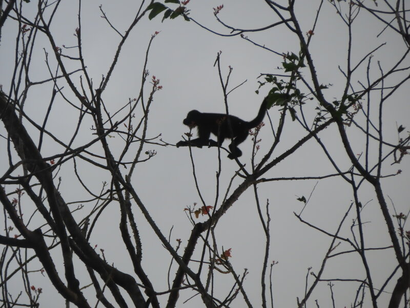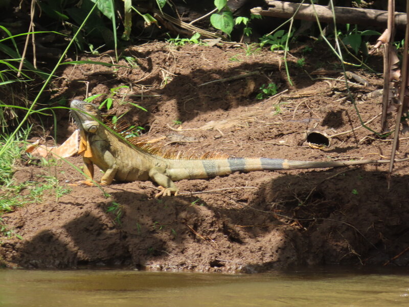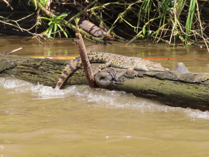 Um sechs Uhr, schon vor dem Zmorgen, aber wenigstens mit einem warmen Kafi im Bauch, starten wir zu unserer Bootssafari. Still und langsam gleiten wir mit einem offenen Boot über den Fluss und halten Ausschau nach Tieren und Pflanzen. Schon bald entdecken wir einen grünen Leguan und einen Schlangenhalsvogel. Schlag auf Schlag geht es weiter mit einem grünen Basilisken und Gelbstirn-Wasserhühnern. Es ist unglaublich, was sich da am Ufer und auf den Bäumen alles tummelt. Brüllaffen, Klammeraffen, Fischadler, Tukane, Blaureiher, Papageien, Silberreiher, Wasserschildkröten, Krokodile, Kaimane und noch vieles mehr. Wir gleiten gemütlich am Ufer des Flusses entlang und durch einen engen Kanal. Nicht nur die Tiere, auch die üppige Vegetation des Dschungels sind überwältigend. Die zweistündige Fahrt ist so kurzweilig, dass wir gar nicht merken wie die Zeit vergeht, und dass sich unser Magen nach dem Zmorgen sehnt.