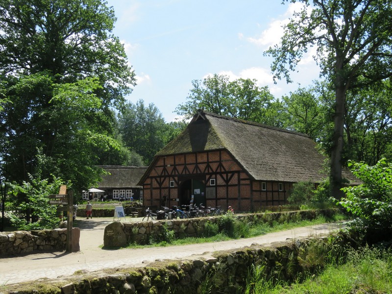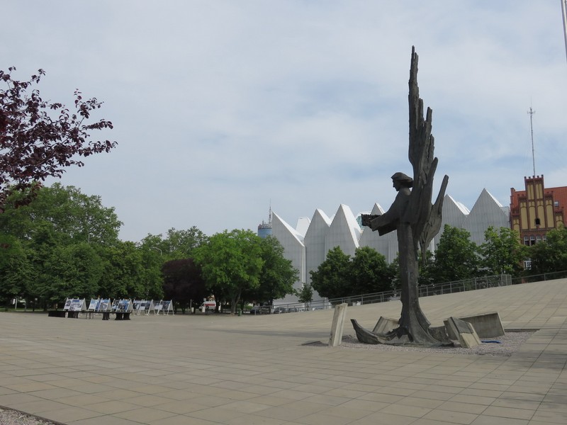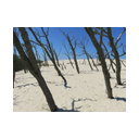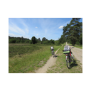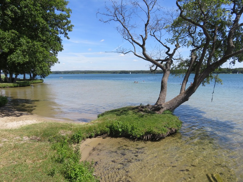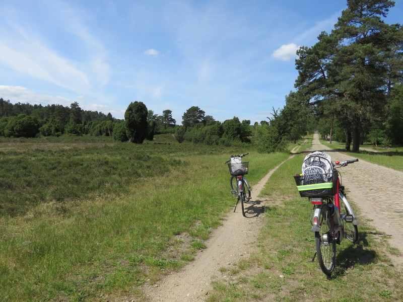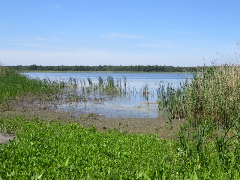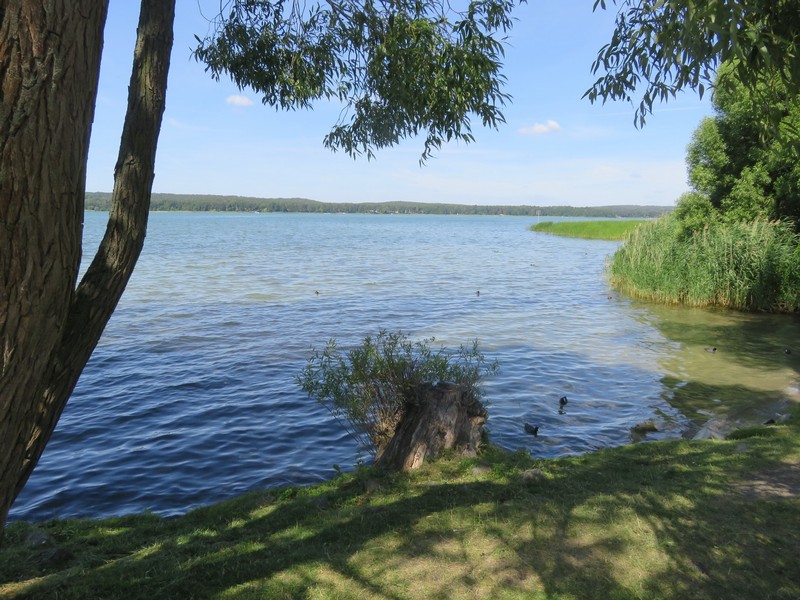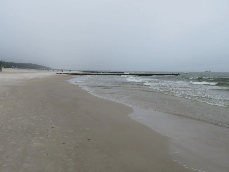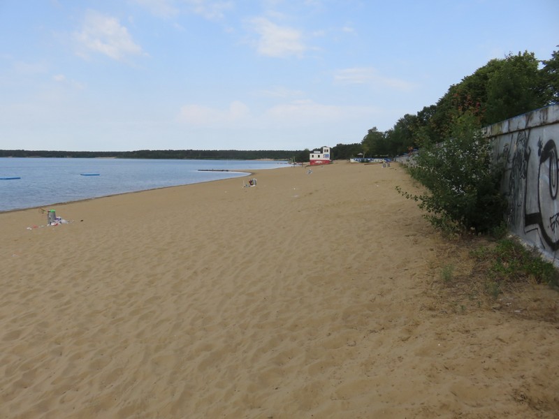 Von Leba aus unternehmen wir eine Tour in den Slowinzischen Nationalpark. Mit dem Velo radeln wir durch einen wunderbaren, naturbelassenen Föhrenwald bis wir nicht mehr weiterkommen und im Sand stecken bleiben. Jetzt sind wir am Fuss der Lącka Góra Düne. Der Aufstieg auf den 50 Meter hohen Sandhügel ist recht anstrengend. Oben werden wir aber mit einem fantastischen Ausblick belohnt. Weisse Sandberge, soweit das Auge reicht. Wir wandern über diese grossartige Dünenlandschaft und geniessen den Ausblick auf den Lebsko See und auf die Ostsee. Wir wandern hinunter bis ans Meer, kehren aber wieder über die Düne zurück. Auf dem Rückweg kommen wir durch einen abgestorbenen Wald. Nicht zuletzt auch wegen der Hitze erinnert uns diese Landschaft an das Dead Vlei in Namibia.
