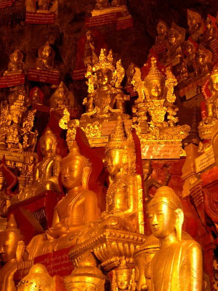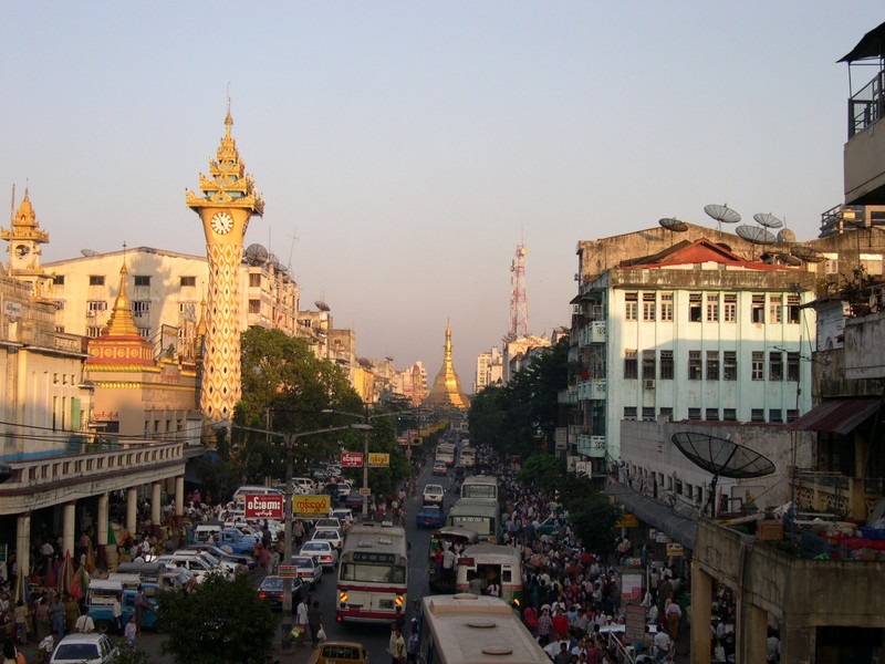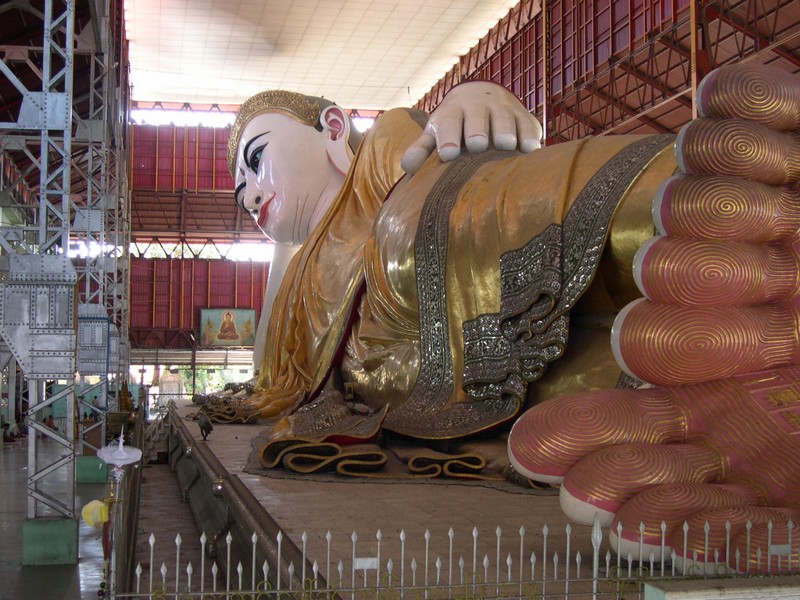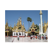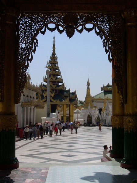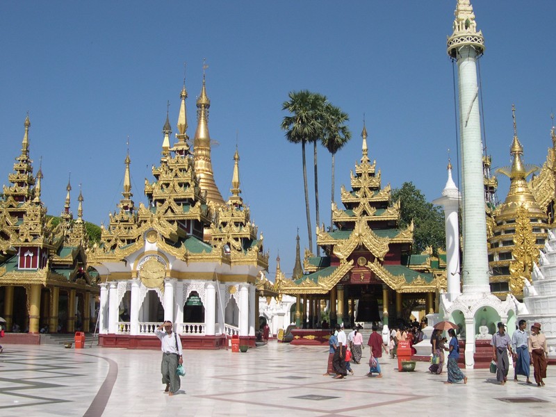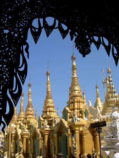 Der Höhepunkt unserer Rundfahrt in Yangon ist der Besuch der Shwedagon Pagode. Rund um die riesengrosse, goldene Stupa gruppieren sich viele kleinere Tempel. Für jedes Gebiet von Burma wurde hier eine eigene Gebetshalle gebaut. Im Uhrzeigersinn und barfuss, wie es sich gehört, besichtigen wir die phantasievollen, golden glänzenden Gebäude und Plätze. Man kann die vielen schönen Eindrücke gar nicht beschreiben. Wir sind einfach erschlagen von dem vielen Gold, von den schönen Formen und Verzierungen, von den grossen Plätzen und überhaupt von der ganzen Stimmung die hier herrscht. Obwohl hier die Gläubigen in Überzahl sind, hat hier alles nebeneinander Platz, fotografierende Touristen, picknickende Familien und betende Menschen.