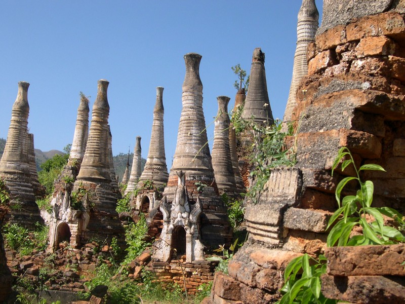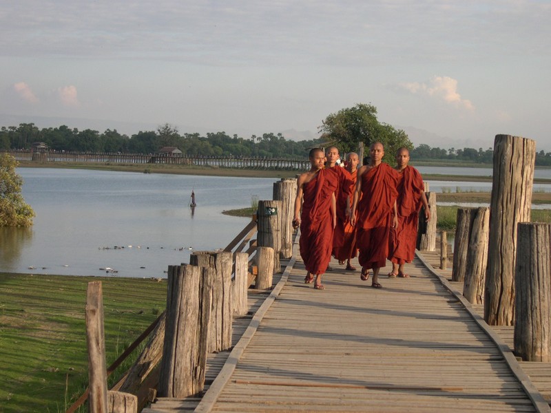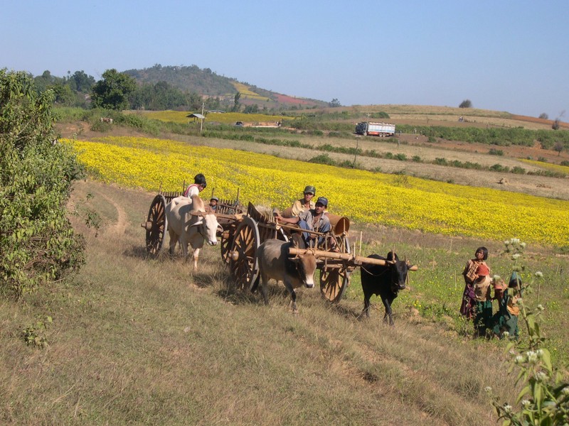 In Yangon werden wir sehr eindrücklich mit dem Buddhismus und seinen prunkvollen Pagoden konfrontiert. Wir probieren auf den betriebsamen Märkten viele Spezialitäten, auch gegrillte Grillen. Ein Inlandflug bringt uns nach Heho und wir können hier die wunderbare Gegend rund um den Inlesee mit dem Boot und dem Velo erkunden. Wir besuchen den schwimmenden Markt von Ywama, einen Hügel mit tausenden zerfallenen Stupas, die schwimmenden Gärten,eine Seidenweberei, einen Schirmmacher und die Pyndaya-Höhle mit ihren über 8000 Buddha Figuren. Eine Wanderung durch grosse Mandarinenplantagen führt uns in ein Bergdorf wo viele Familien in einem Langhaus wohnen. Über das Shan-Hochland wo wir die Bauern noch mit Ochsengespannen pflügen und den Reis von Hand dreschen, erreichen wir Mandalay, die interessante alte Königsstadt. Eine erlebnisreiche Eisenbahnfahrt bringt uns in die alte Kolonialstadt Pyn-U-Lwin. Wir radeln dem Irrawadyfluss entlang und besuchen unterwegs eindrückliche Pagoden, ein Spital und die 1,2 km lange U-Bein Brücke. Eine Bootsfahrt auf dem Irrawaddy bringt uns nach Bagan. Nachdem wir einen Sonnenaufgang auf einer Pagode erlebt haben, fahren wir über sandige Wege an vielen interessanten, alten Pagoden und Tempeln vorbei. Auf der letzten Etappe zum Mount Popa können wir zuschauen wie Erdnüsse gedrescht werden, wie Erdnussöl gewonnen, oder wie Palmwein gekocht wird. Wir begengen Frauen, welche kilometerweit an eine Wasserstelle laufen, um dort ihre Gefässe zu füllen.