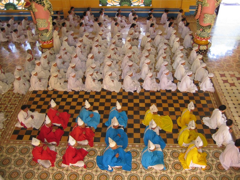 In Tay Ninh wohnen wir einer Zeremonie der Cao Dai Religion bei und in Ben Suc besuchen und bekriechen wir die Chu Chi Tunnels, welche im Vietnamkrieg eine bedeutende Rolle gespielt haben. Jetzt geht es in die Berge. Bei extremer Hitze überqueren wir einen Pass und fahren nach Bao Loc. Der Weg zum Pon Gur Wasserfall führt durch unzählige kleine Dörfer und durch grosse Kaffee und Teeplantagen. Überall wird der Kaffee vor den Häusern zum Trockenen ausgebreitet. Der Bus bringt uns weiter nach Da Lat. Diese Stadt liegt auf 1500m und war früher die Sommerresidenz der französischen Besatzer. Nach einer Bootsfahrt auf dem See besteigen wir den Elefantenberg durch einen kleinen Dschungel und durch sumpfige Moore. Eine rassige Passabfahrt führt uns dann wieder ins Flachland. Man spürt wie es wieder heisser und schwüler wird. Unsere letzte Etappe nach Lung Hai führt durch Reisfelder und Plantangen mit Drachenfrüchten. Dann bringt uns ein Schnellboot von Vung Tau nach Saigon zurück. Vietnam ist ein wunderbares, aufstrebendes Land. Die Leute sind alle sehr freundlich. Sie scheinen den Krieg vergessen zu haben. Auf die Frage ob sie böse auf die Amerikaner seinen meint Hai: „Wir sind nicht böse auf die Amerikaner, nur auf die amerikanische Regierung“.