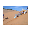 Für diejenigen welche am Ruhetag noch etwas unternehmen wollen, gibt es um 13 Uhr einen Treff. Es sind nur Karl, Werner und wir zwei da. Wir beschliessen zwei Mopeds zu mieten und in die Dünen zu fahren. Werner und Karl sind erfahrene Töfffahrer und wir dürfen hinten aufsitzen. Bei den schönen Sanddünen halten wir für einen Drink an und werden sofort von einer Horde Kinder belagert. Mit langen Plastikplanen, wollen sie mit uns in den Dünen surfen. Zuerst fahren wir aber noch weiter dem Meer entlang und ins Landesinnere an den See, welchen wir gestern auf der Vorbeifahrt gesehen haben. Auf dem Rückweg begeben wir uns dann mit den Kindern auf eine Rutschpartie. Wir wandern zusammen durch die schöne Dünenlandschaft auf einen Hügel. Dort wo die Düne am Steilsten ist werden die Plastikplanen vorbereitet. Die Kinder zeigen uns, wie wir darauf sitzen müssen. Dann werden wir mit vereinten Kräften hinunter geschubst. Wenn man schön nach hinten liegt, läuft es richtig gut. Obwohl wir bald voller Sand sind, macht es uns grossen Spass. Wir schauen, wer am weitesten kommt. Natürlich wollen die Kinder für Ihre Dienste ein Trinkgeld. Als Dank dafür bekommen wir alle ein selbst gebasteltes Karton-Handy. Kurz vor Mui Ne halten wir an einem Strand und sehen zu wie die Fischer mit vereinten Kräften, im Abendlicht, ihre Netze an Land ziehen.